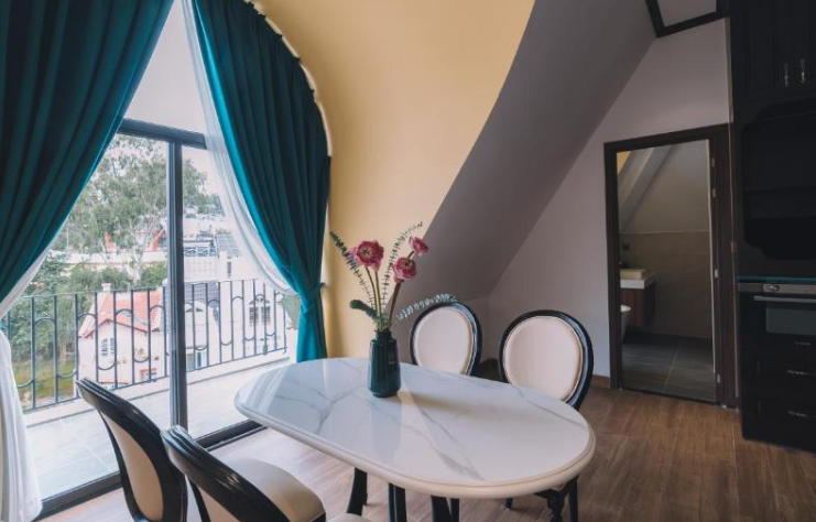 조식은 호불호가 있고 시내까지는 그랩이나 택시를 이용해 이동해야 합니다.  2인 룸 가격이 평균 15만원 전후로 달랏숙소평균가격보다 높은 편입니다.