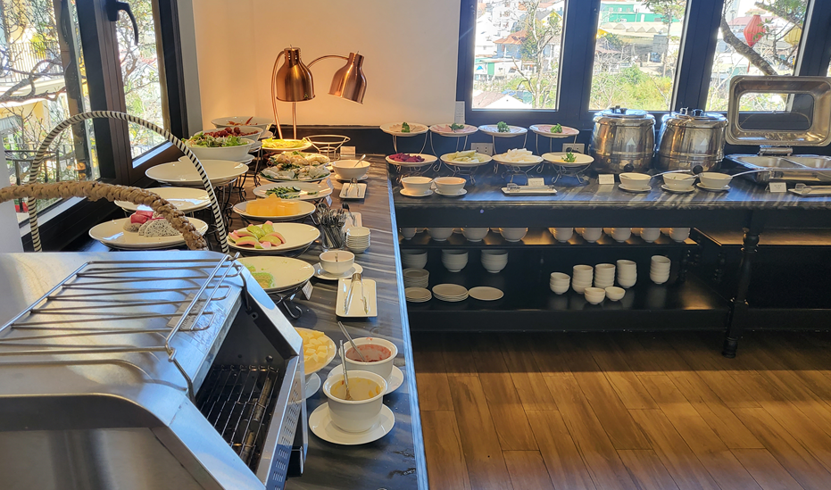 호텔이 4층까지이지만 높은 지대에 있으니 창밖뷰가 정말 멋집니다. 달랏은 높은 건물도 없어서 탁트인 뷰를 보실 수가 있어요. 아침에 일어나 테라스 문을 열고 바깥풍경을 보는 것만으로도 힐링됩니다.
