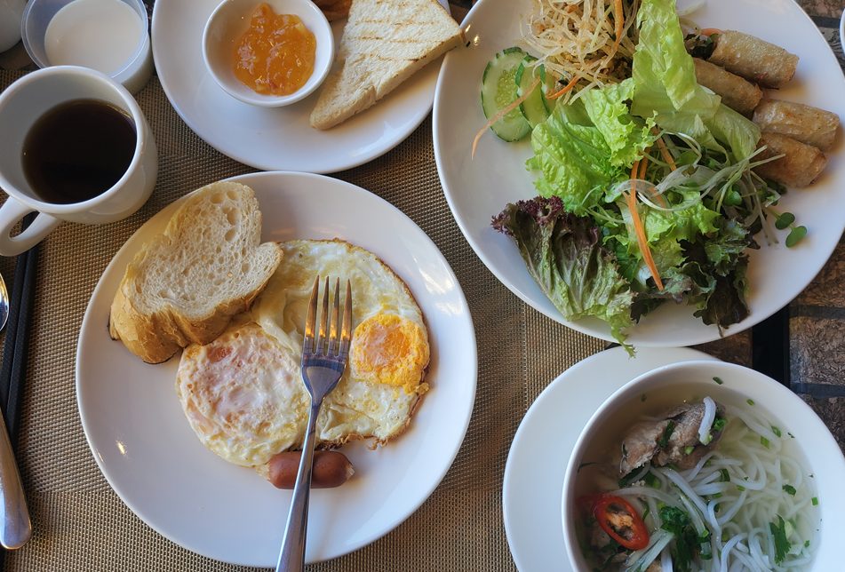 이 점 빼고는 딱히 나쁘지 않은 호텔이었어요. 베트남 호텔의 조식은 어디든 크게 기대할게 못되기에 골디엔트호텔도 중간정도는 하는 듯하고 조식 먹으며 보는 뷰도 괜찮았고요.