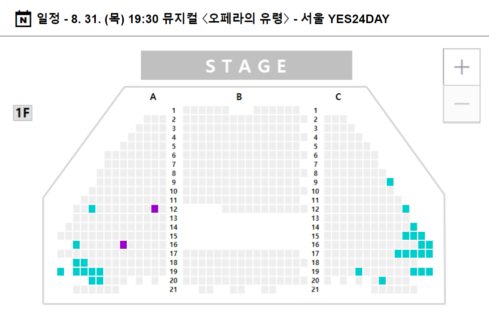 오페라의 유령 좌석은 이렇게 배치되어 있어요. 오페라의 유령 8월 30일 31일 티켓이 너무 많이 남아있어서 잘못된 게 아닐까 의심하며 예매했는데 예매된 거 보니 맞는 거 같아요. 전 8월 30일 7시 20분 티켓으로 2층 A열로 예매했습니다. 오페라의 유령 티켓팅이 그렇게나 어렵다는데 이게 꿈인가 하면서 예매했네요. 컴퓨터로 예매할 경우 예스 24 티켓이고 모바일로 할 경우는 예스 24 티켓팅이 아닌 건지 적혀있는 게 없었습니다.
