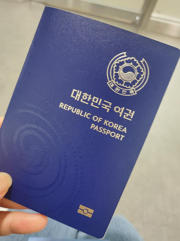 신여권 디자인 보여드릴께요. 예전 초록색구여권에 비해 저는 신여권의 색상이 너무 마음에 듭니다. 청명한 남색의 색상이 예전 녹색보다 훨씬 좋아 보여요. 예전 여권보며 여권디자인 좀 바뀌면 좋겠다 싶었는데 코로나 지나고 바뀐 여권을 마주하니 감회가 새롭습니다.