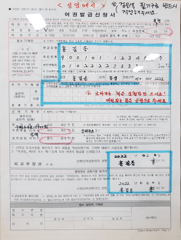 여권발급신청서 (구비된 서류 작성)