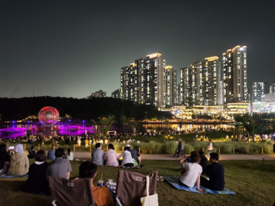 제가 방문한 날은 6월의 금요일 저녁이었는데도 정말 많은 사람들이 있었어요. 공원이 넓고 쾌적해서 그래도 한강공원만큼 붐빈다는 생각은 들지 않았고 즐기기에 전혀 지장은 없었습니다. 6월의 밤은 시원해서 맥주 한잔 하면서 공연 보기에 더없이 좋은 날이었어요.