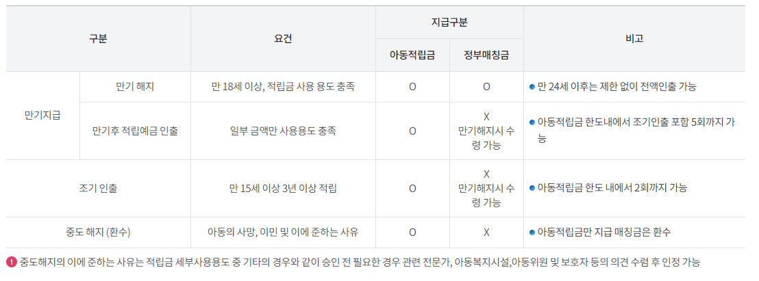 즉 24세 이전에는 자립을 위한 용도에 맞게 써야하나 24세 이후에는 사용제한 없이 마음대로 돈을 사용하실 수 있습니다.
