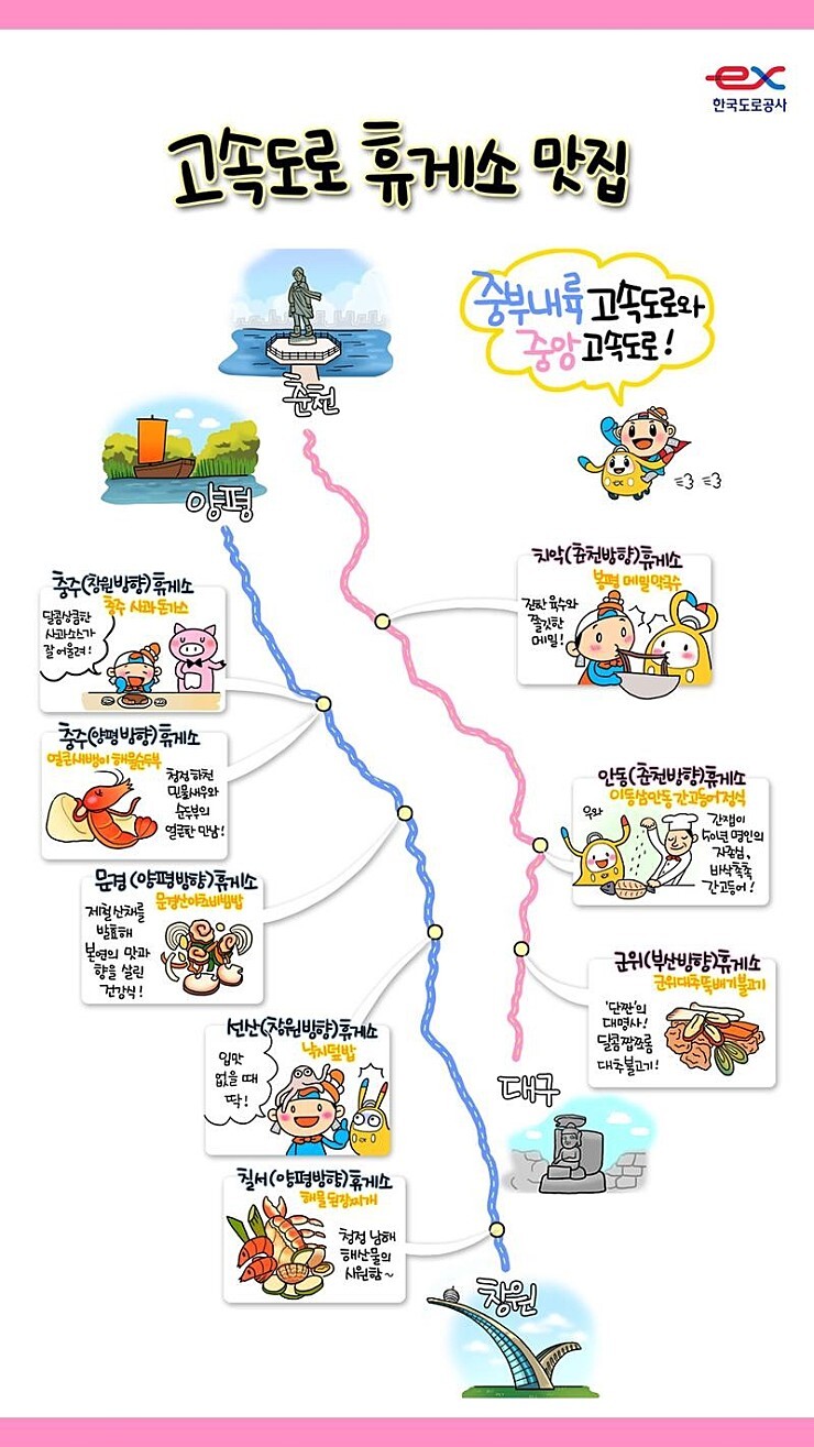 영동고속도로, 평택제천고속도로 휴게소 맛집 지도