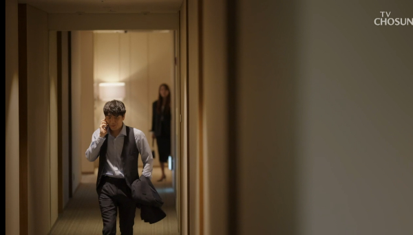 둘은 이렇게 의미심장한 대화를 나누는데요. 윤진이 누군가에게 서재원과 김성범이 함께 호텔에 들어가는 사진을 받는데 이걸 보낸게 권영익이 아닐까 추측해봅니다. 서재원을 다룰 비밀을 만들고 김성범을 자신의 딸에게 떼어내고 권윤진도 자극하고 여러 이익을 위해 권영익의 계획이 아닐까 싶네요.