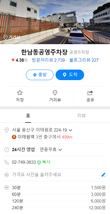 | 주차장 주소 | 한남동 728-27 | 이태원로 224-19 |