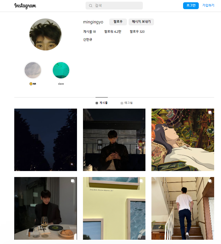 다음은 현재 모든 여자출연진들의 마음속에 자리잡고 있는 하트시그널 시즌4 최고 인기남 신민규님의 인스타그램입니다.