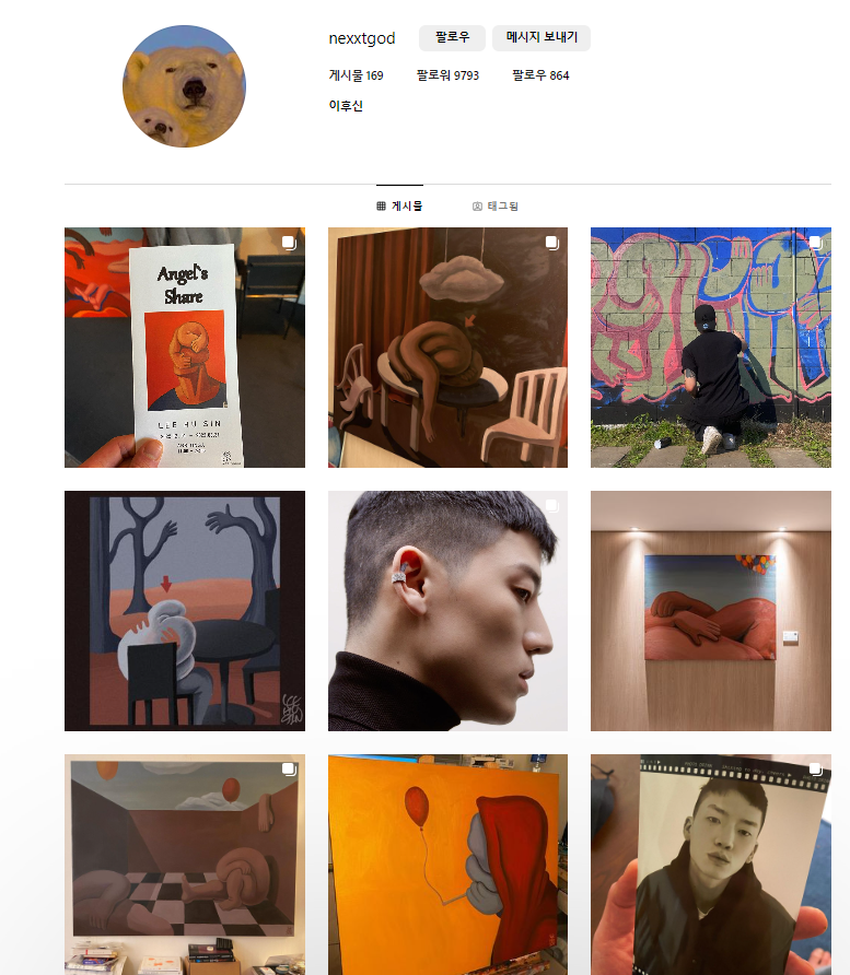 비주얼적으로 처음 인상이 가장 매력적인 출연자가 아니었던가 해요. 카리스마 풍기며 쉽게 범접할 수 없는 분위기로 시그널하우스에 오셨는데 재미있고 귀여운 분이셨어요. 작가로 활동중이신 분 답게 아티스트 면모 가득한 인스타공간이네요. 후신님의 작품이 궁금하셨던 분은 인스타에서 확인해 보세요.