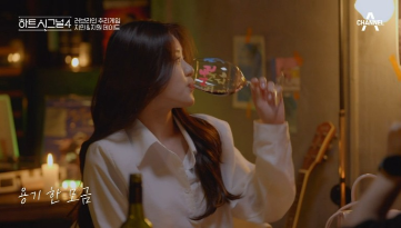 더 할 말이 많은데 말로 꺼내기 어렵다며 술을 빌려 이야기해야겠다며 용기한모금 마시는 지민.