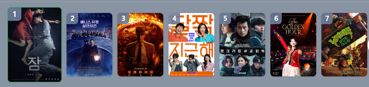 네이버의 상영중인 영화 인기순위도 3위까지는 잠, 베니스 유령 살인사건, 오펜하이머로 동일하지만 아이유콘서트 극장 상영이 10위안에 들어가 있습니다.